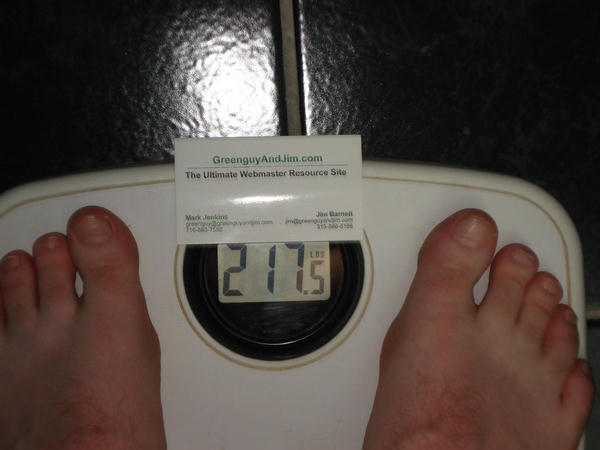 The white scale from hell is saying 184 lbs for me today