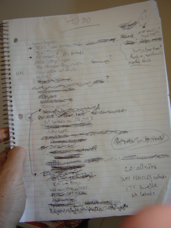 I have one or umm 3 of them "To Do Lists" i love the dollar store i buy in bulk as i update my lists and i always keep a hardcopy of logins and pass stuff for servers/sponsors and so forth i keep a copy of that in my safe ( fire proof) . I would in this day of computers be lost with out pen and paper