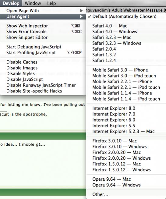 If you want to test pages for the iphone you may want to download Safari and turn on the developer's menu.