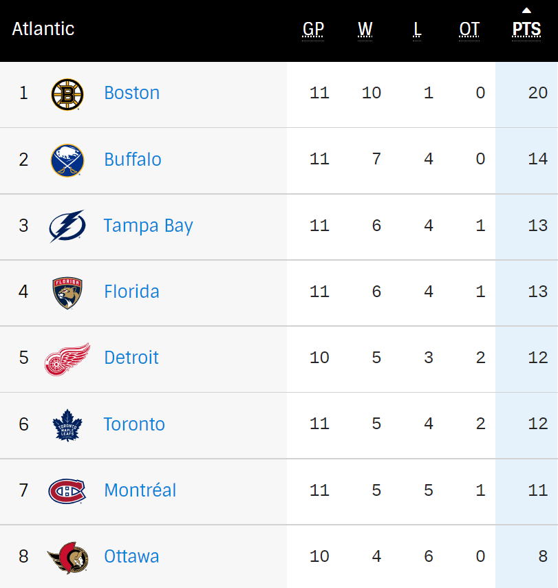 Who thought the Atlantic Division would look like this after 3 weeks: